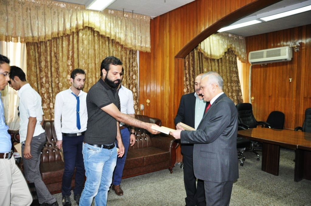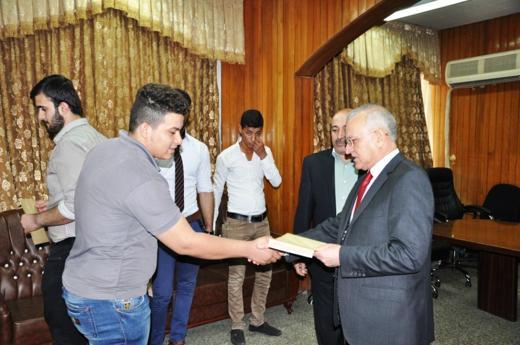 وقال رئيس الجامعة في حديثه مع الطلبة المكرمين “لقد كرمنا فيكم القوة والبسالة في تحمل الصعاب ومواجهة الإرهاب الاعمى الذي يريد إيقاف عجلة الحياة والبناء والاعمار والتطور في عراقنا الجديد، وما وقفتكم وصمودكم بوجه هذه التحديات الا دليل على اصرار العراقيين الشرفاء في مقاومة الإرهابيين والتكفيريين بافعالهم الجبانة التي لن تثني تفوقكم العلمي ومواصلتكم للدراسة وتحقيق اعلى درجات النجاح العلمي والمعرفي، بل سيزيدكم تحديا وابداعا ونجاحا لتسهموا في خدمة بلادكم الحبيبة” .